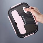 از جنس پلاستیک فشرده به شکل مسطتیل درب پلاستیکی قفلدار همراه با قاشق و چنگال پلاستیکی 3 محفظه مخصوص غذا و تنقلات و یک محفظه جای قاشق و چنگال مناسب نگهداری و حمل غذاها، میوه، سالاد مناسب برای حمل غذا به مهدکودک، محل کار و …… قابل استفاده در فریزر و ماکروویو.